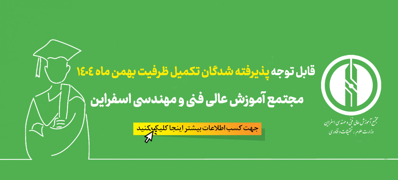 کنفرانس مجتمع آموزش عالی فنی و مهندسی اسفراین که در تاریخ 19 و 20 آبان 1404در مجتمع آموزش عالی فنی مهندسی اسفراین برگزار خواهند شد. هدف از برگزاری این کنفرانسها فراهم آوردن زمینه های همکاری بیشتر بین پژوهشگران با ارائه آخرین دستاوردهای علمی و ایجاد موقعیت برای تبادل نظر و آشنایی بیشتر دانشجویان با آخرین پیشرفت ها در زمینه های نظری و کاربردی این رشته ها می باشد.