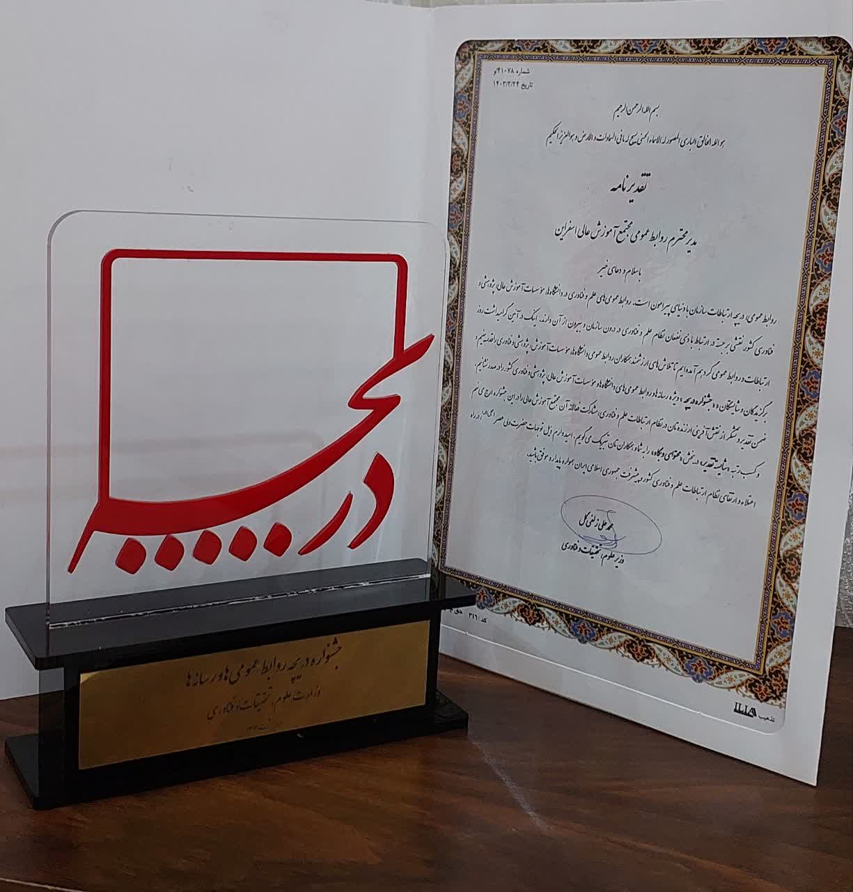 کسب عنوان شایسته تقدیر توسط روابط عمومی مجتمع آموزش عالی فنی و مهندسی اسفراین در جشنواره دریچه در بین روابط عمومی های وزارت عتف