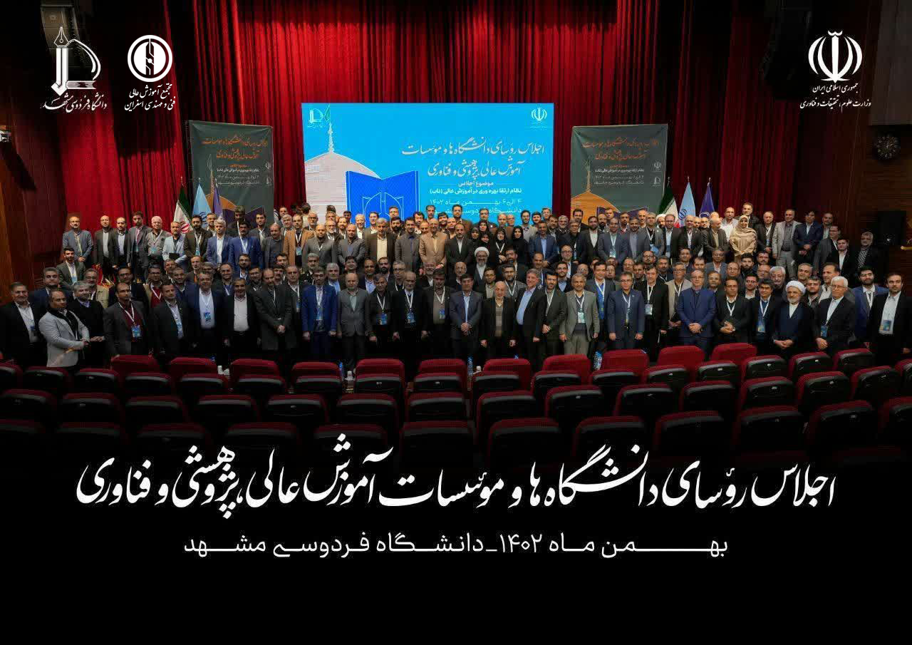 رؤسای دانشگاهها و مؤسسات آموزش عالی، پژوهشی و فناوری کشور در این اجلاس که مقارن با زمان مبارک ( ولادت با سعادت مولای متقیان، امیر المومنان حضرت علی (ع) و مکان مقدس (در جوار مضجع شریف رضوی) و در آستانه دهه مبارک فجر انقلاب شکوهمند اسلامی با عنوان نظام ارتقاء بهرهوری در آموزش عالی برگزار شد ضمن گرامیداشت یاد و نام معمار بزرگ انقلاب و سرداران شهید سرافراز عرصه دفاع مقدس، حریم، حرم، سلامت و امنیت کشور و آرزوی عزت و اقتدار روزافزون نظام مقدس جمهوری اسلامی ایران به زعامت رهبری حکیم و فرزانه انقلاب و مجاهدت رئیسجمهور محبوب و مردمی، بر بندهای زیر به عنوان بیانیه اجلاس تأکید نمودند.