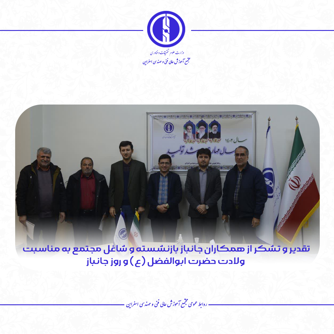 تقدیر و تشکر ز همکاران جانباز بازنشسته و شاغل مجتمع به مناسبت ولادت حضرت ابوالفضل (ع) و روز جانباز