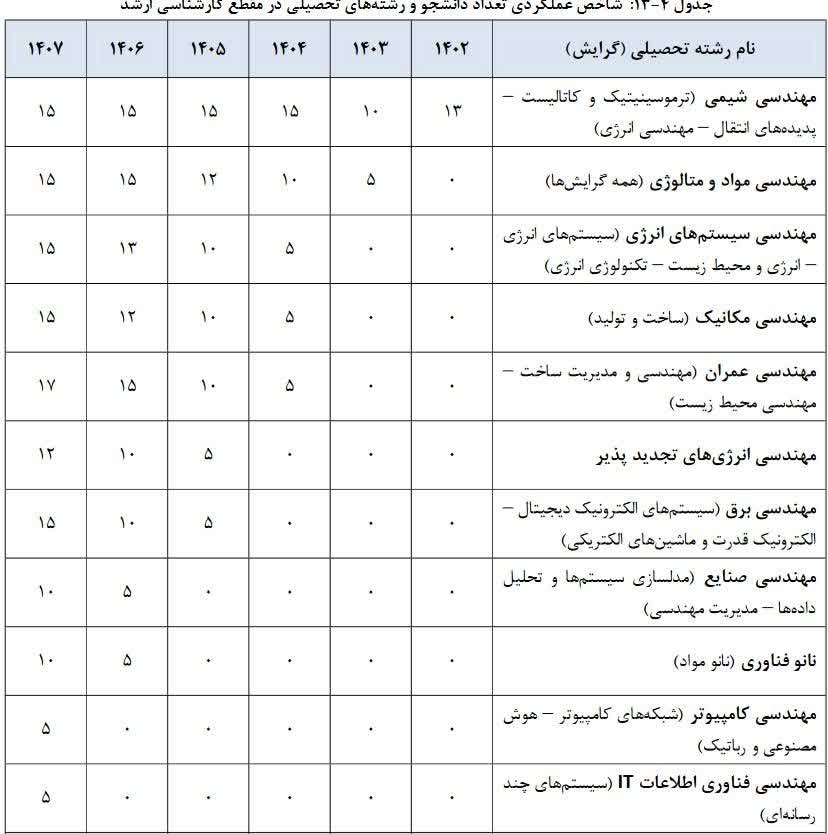 همچنین جذب دو رشته کارشناسی مهندسی انرژی و معدن و کارشناسی ارشد در کلیه رشته های موجود در مجتمع (ده رشته) از برنامه های مصوب در این سند برای ۵ سال آینده است.