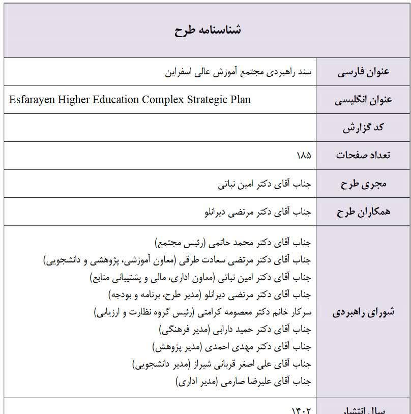 سند راهبردی که از مستندات ضروری برای ارتقا به دانشگاه است به تایید مشاورمحترم وزیر در امور برنامه ریزی و مدیریت راهبردی وزارت عتف نیز رسیده است. این سند به تحلیل نقاط قوت، ضعف، فرصت ها و تهدیدها، ماموریت ها، بررسی بودجه، نیروی انسانی و اعضای هیات علمی مورد نیاز پرداخته است.