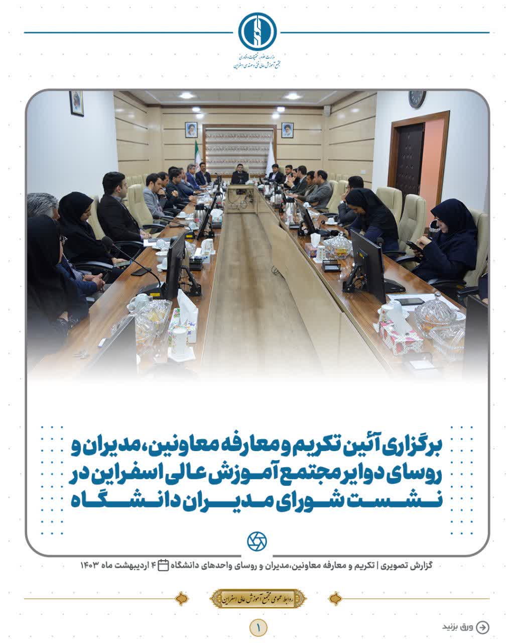 برگزاری آئین تکریم و معارفه معاونین و مدیران، و معارفه نخستین رؤسای دانشکده های مجتمع آموزش عالی اسفراین