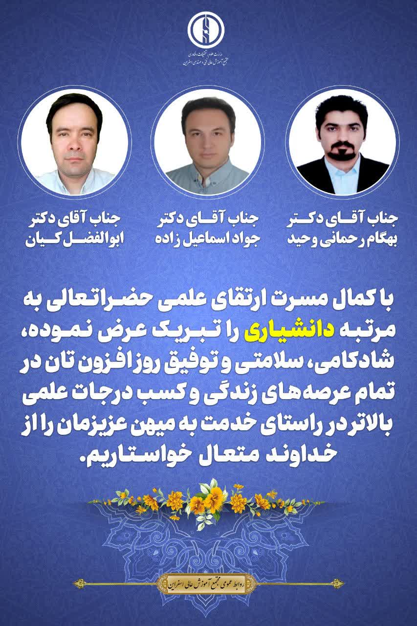 پیام تبریک جامعه دانشگاهی مجتمع آموزش عالی فنی و مهندسی اسفراین در پی ارتقا مرتبه علمی ۳ عضو هیات علمی مجتمع ۲۷ تیر ۱۴۰۳ | ۱۰:۳۷ کد : ۳۱۳ اخبــــار مجتمع ارسال به دیگران نام شما ایمیل شما ایمیل دریافتکننده ارسال انصراف تعداد بازدید:۴۰۹