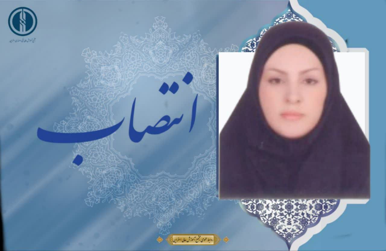 طی حکمی از سوی دکتر محمد حاتمی، ریاست مجتمع آموزش عالی فنی و مهندسی اسفراین،دکتر سمیه گرایلو عضو هیات علمی مجتمع، به سمت مدیر گروه علوم پایه و مهندسی مجتمع آموزش عالی فنی و مهندسی اسفراین منصوب گردید.