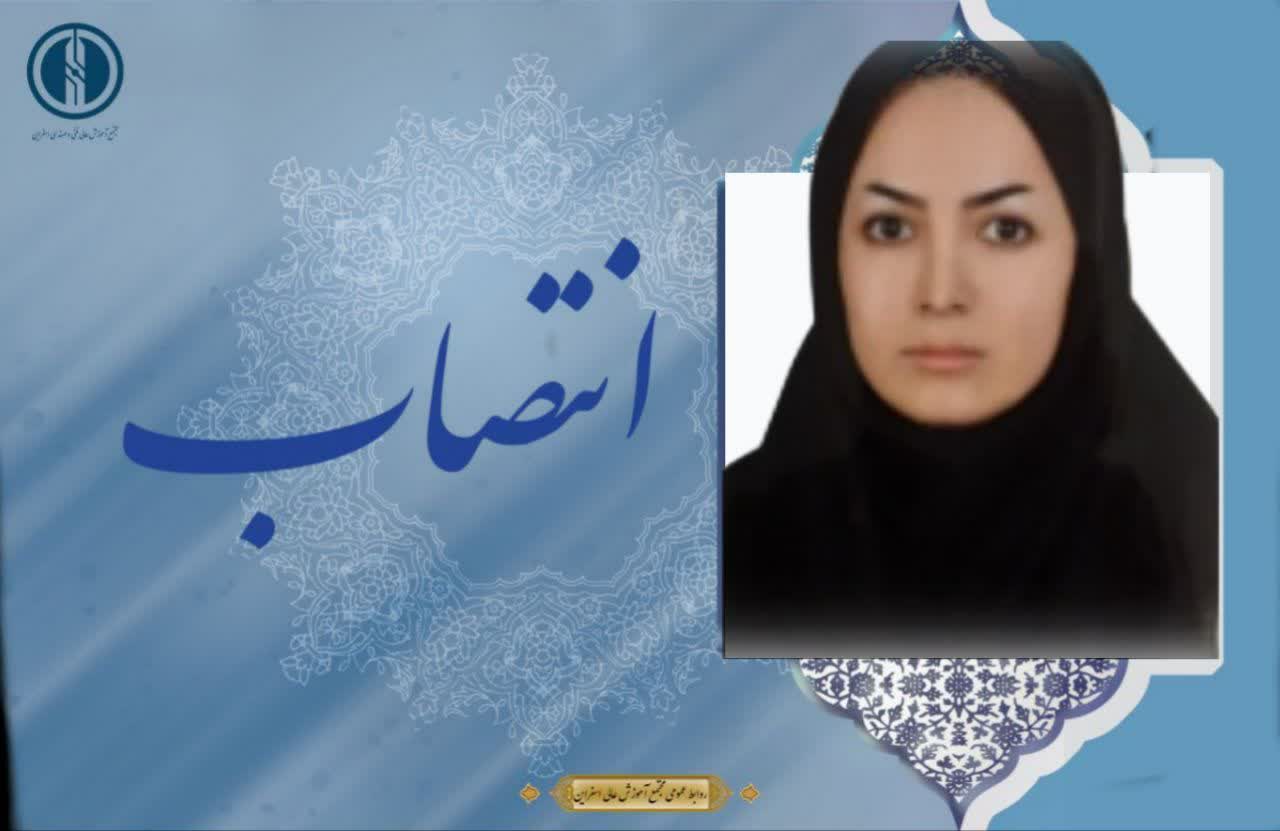 طی حکمی از سوی دکتر محمد حاتمی، ریاست مجتمع آموزش عالی فنی و مهندسی اسفراین،دکتر فاطمه سعید پور عضو هیات علمی مجتمع ، به سمت مدیر گروه مهندسی مواد مجتمع آموزش عالی فنی و مهندسی اسفراین منصوب گردید.