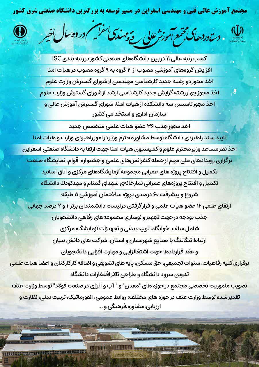 گزیدهای از دستاوردهای مجتمع آموزش عالی فنی و مهندسی اسفراین در دوسال اخیر به مناسبت هفته دولت ۰۵ شهریور ۱۴۰۳ | ۰۶:۴۵ کد : ۳۳۷ اخبــــار مجتمع ارسال به دیگران نام شما ایمیل شما ایمیل دریافتکننده ارسال انصراف تعداد بازدید:۴۰۲