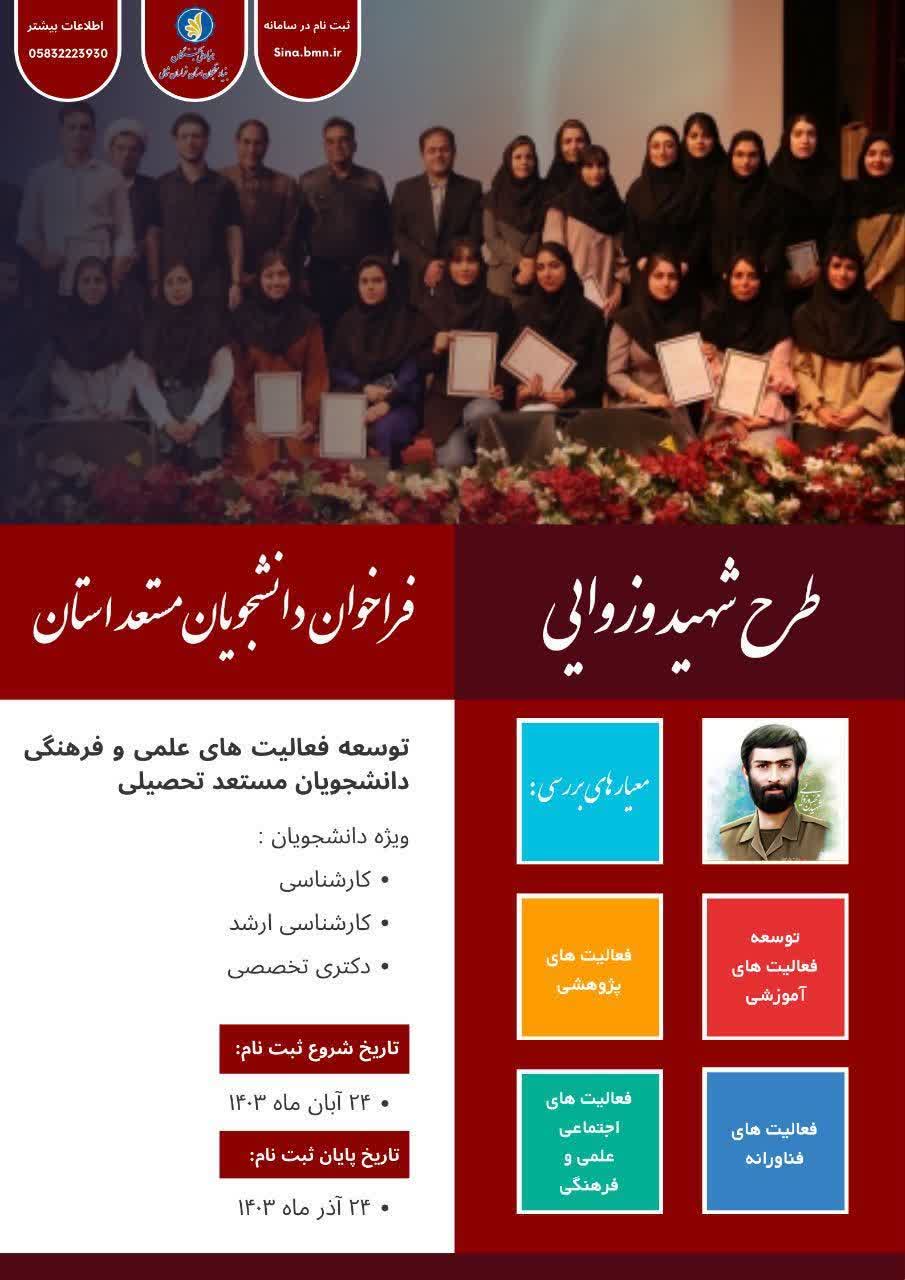 طرح توسعۀ فعالیتهای علمی و فرهنگی دانشجویان مستعد تحصیلی کشور در سال تحصیلی ۱۴۰۴-۱۴۰۳ (طرح شهید وزوایی)
