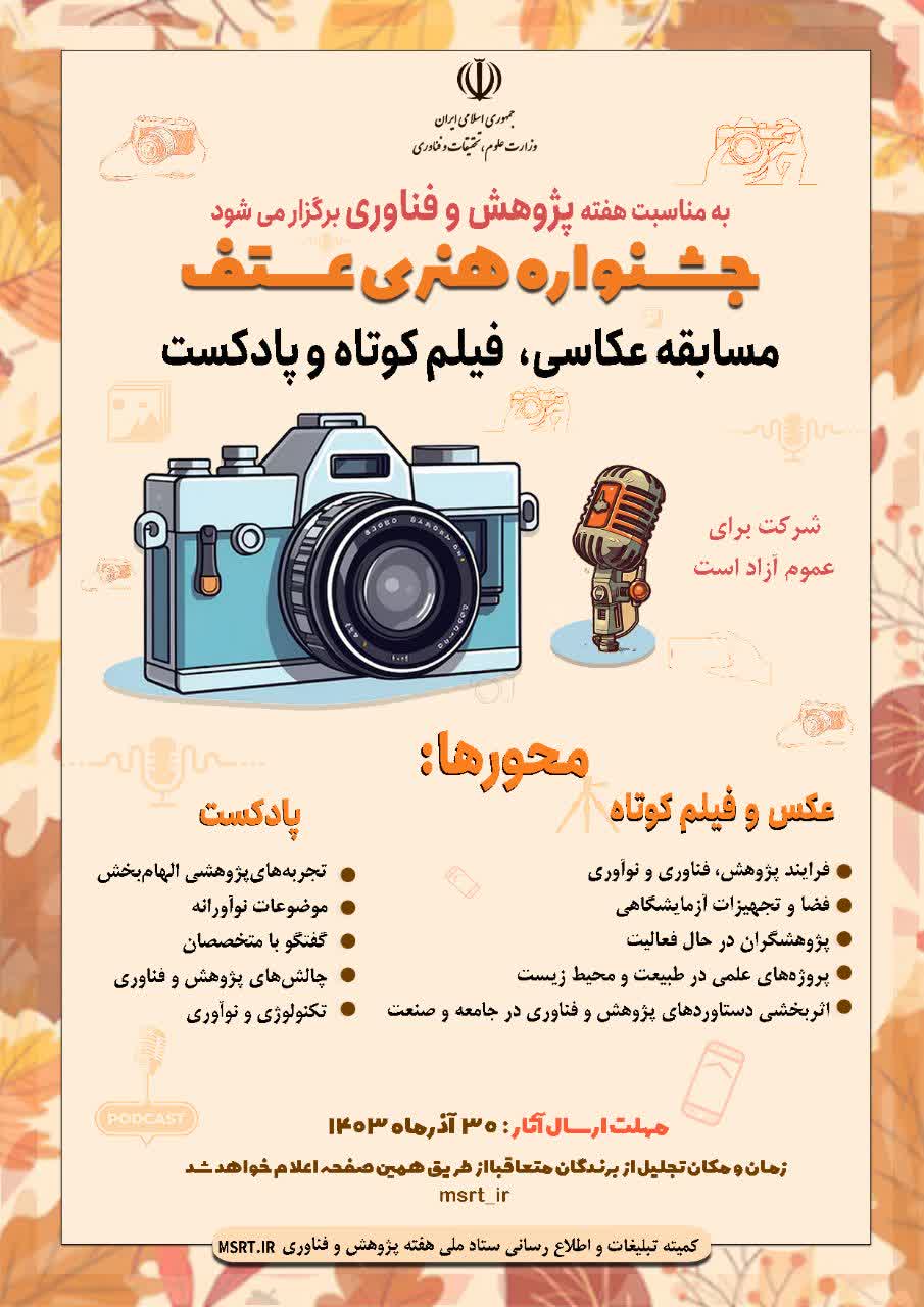 به مناسبت هفته پژوهش و فناوری، فراخوان جشنواره هنری عتف منتشر شد