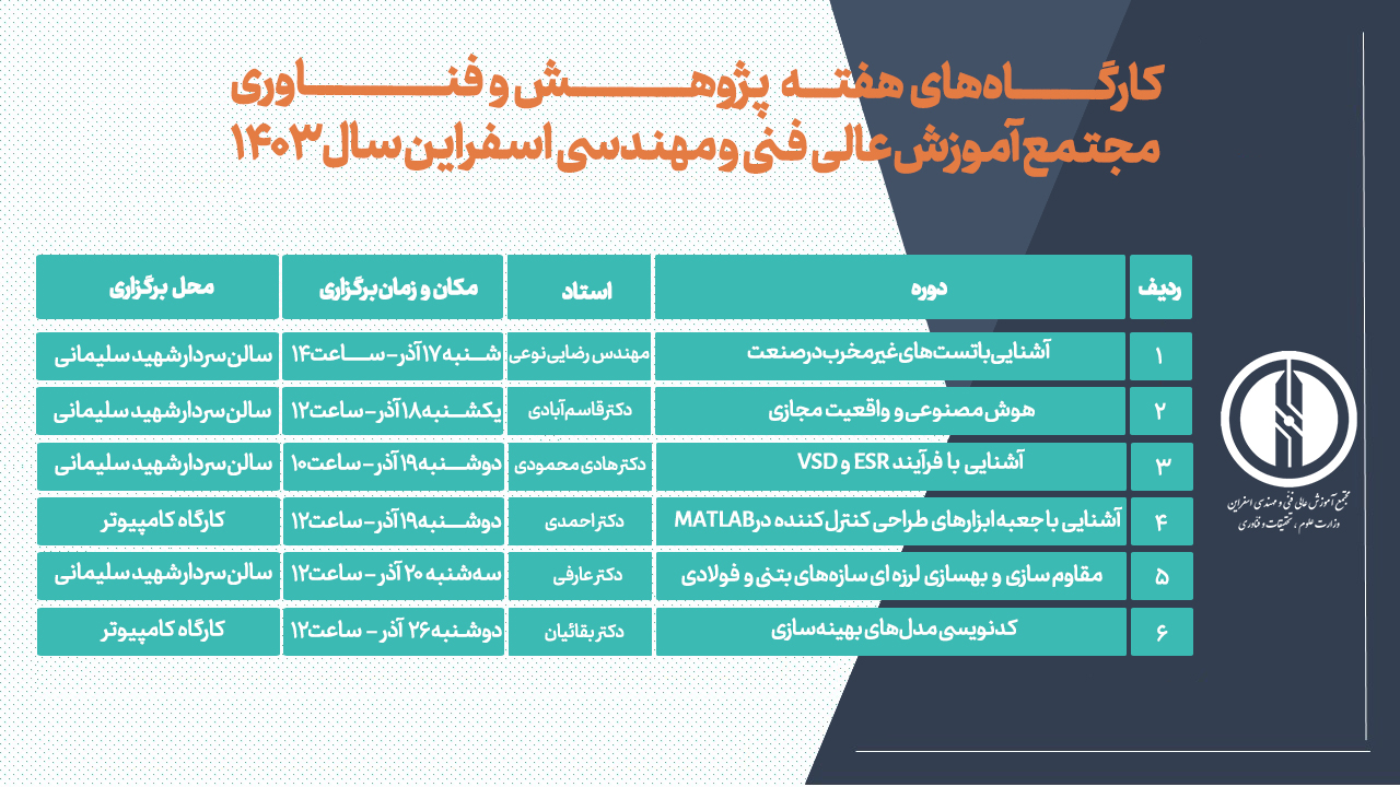 کارگاههای هفته پژوهش و فناوری مجتمع آموزش عالی فنی و مهندسی اسفراین سال ۱۴۰۳ ۱۷ آذر ۱۴۰۳ | ۰۸:۱۱ کد : ۴۷۵ اخبار ستادی اطلاعیهها ارسال به دیگران نام شما ایمیل شما ایمیل دریافتکننده ارسال انصراف تعداد بازدید:۲۰۵