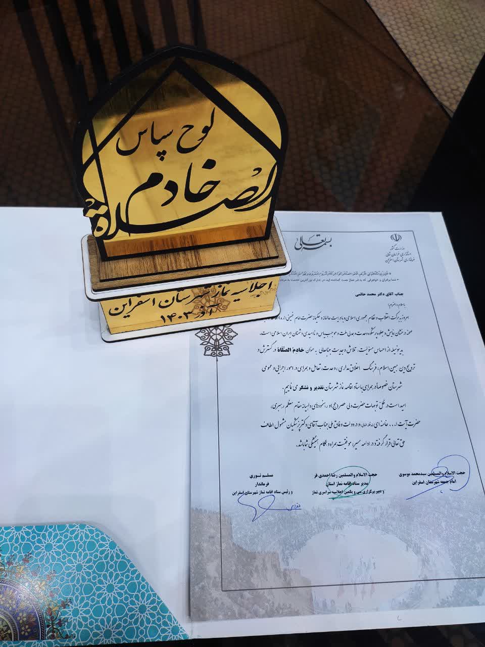ظهر امروز، سی و یکمین اجلاس سراسری نماز در شهرستان اسفراین با حضور مسئولان شهرستانی و استانی در مجتمع فرهنگی هنری نسیم برگزار شد. در این مراسم، از دکتر حاتمی، رئیس محترم مجتمع آموزش عالی فنی و مهندسی اسفراین، به عنوان یکی از فعالان حوزه نماز شهرستان با اهدای لوح و تندیس تقدیر به عمل آمد.