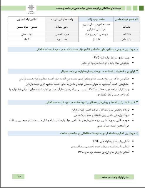 به گزارش روابطعمومی مجتمع آموزش عالی فنی و مهندسی اسفراین، کتاب فرصت های مطالعاتی برگزیده در جامعه و صنعت در سال ۱۴۰۳، از سوی دفتر ارتباط با جامعه و صنعت وزارت عتف منتشر شد. گزارشی از فرصت مطالعاتی دکتر حامد نائب زاده دانشیار مجتمع آموزش عالی فنی و مهندسی اسفراین به عنوان فرصت مطالعاتی برگزیده در صفحه ۱۱۴ این کتاب تشریح شده است.