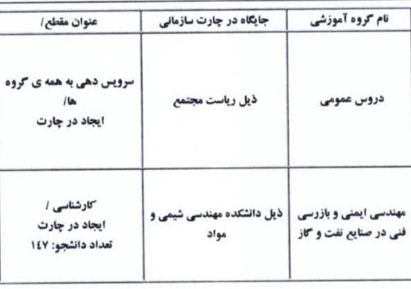 در دستور چهارم مصوبات ابلاغی، دو گروه آموزشی جدید (گروه آموزشی دروس عمومی ذیل ریاست مجتمع و گروه مهندسی ایمنی در صنایع نفت و گاز ذیل دانشکده مهندسی شیمی و مواد) ایجاد شده است.