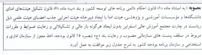 در دستور پنجم و پانزدهم مصوبات ابلاغی، ایجاد دبیرخانه جذب اعضای هیئت علمی در چارت و ایجاد مرکز فناوری اطلاعات، امنیت و هوشمندسازی از طریق تغییر ساختار کتابخانه مرکزی مصوب شده است.