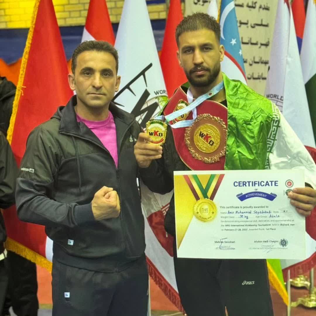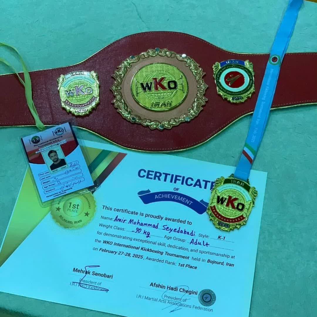آقای امیر محمد سید آبادی، با کسب مقام اول و کمربند طلایی در تورنمنت بینالمللی کیکبوکسینگ سازمان جهانی WKO
