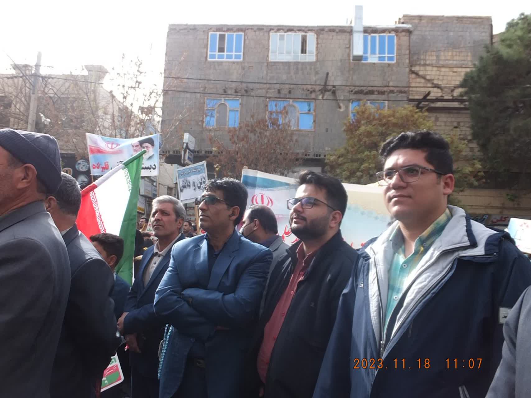 حضور مسئول بسیج اساتید شهرستان اسفراین، ریاست، اعضای هیئت علمی، کارکنان، مسئول بسیج دانشجویی و دانشجویان مجتمع آموزش عالی و فنی و مهندسی اسفراین در راهپیمایی حمایت از مردم مظلوم فلسطین
