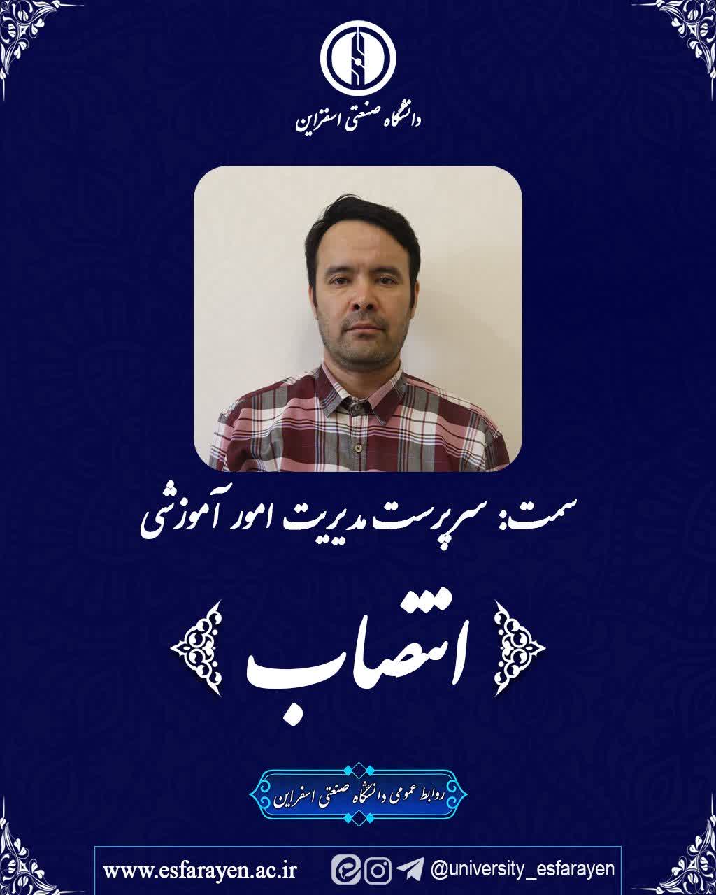 طی حکمی از سوی دکتر محمد حاتمی، ریاست دانشگاه صنعتی اسفراین، دکتر ابوالفضل کیان به سمت سرپرست مدیریت امور آموزشی و تحصیلات تکمیلی دانشگاه صنعتی اسفراین منصوب گردید.