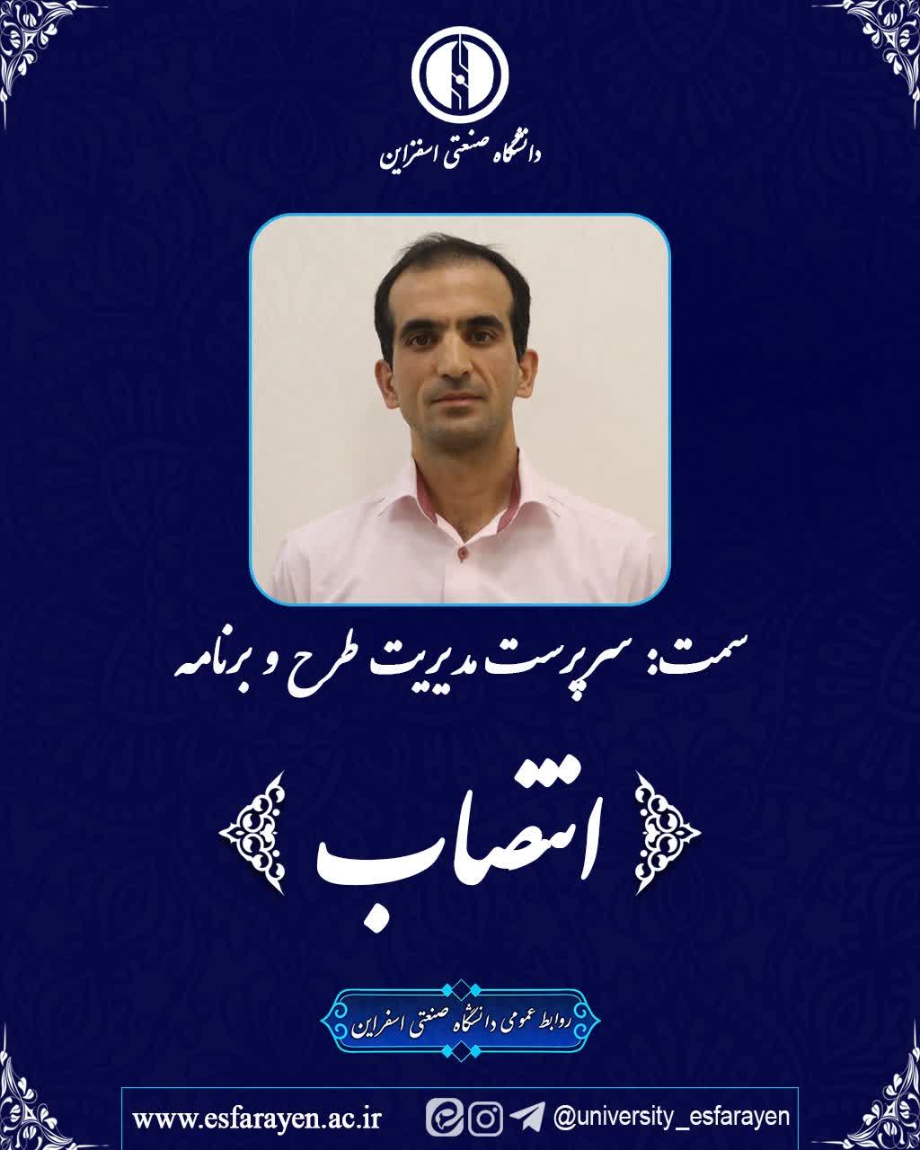 طی حکمی از سوی دکتر محمد حاتمی، ریاست دانشگاه صنعتی اسفراین، دکتر مصطفی طهری به سمت سرپرست مدیریت طرح و برنامه دانشگاه صنعتی اسفراین منصوب گردید.