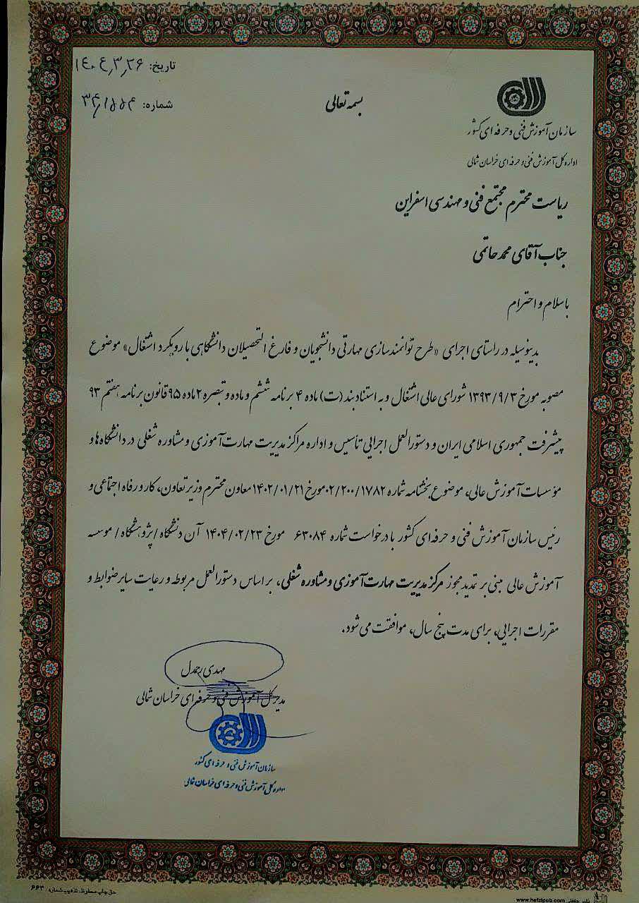 تمدید مجوز " مرکز مدیریت مهارت آموزی و مشاوره شغلی" مجتمع