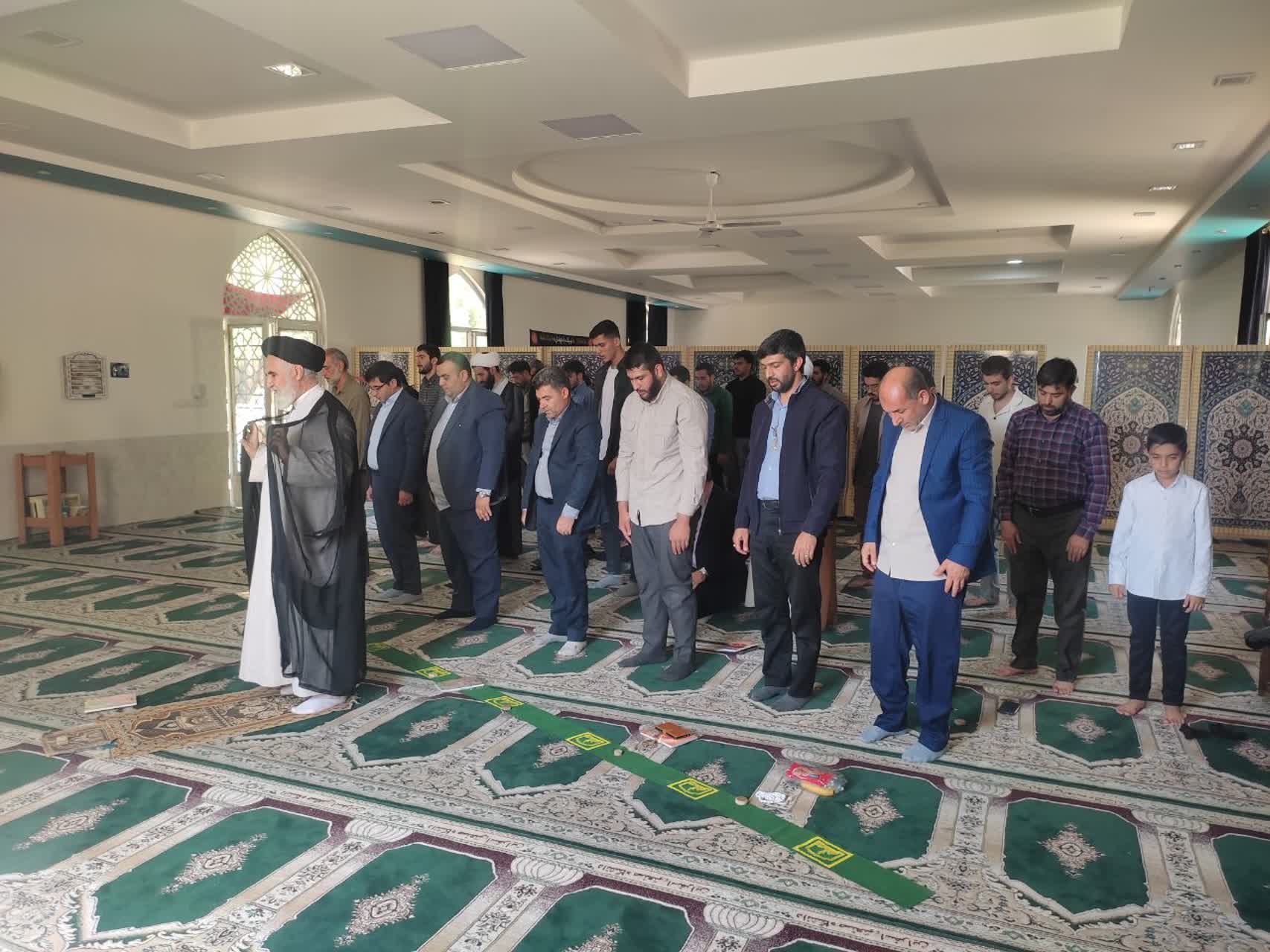 همچنین در پایان این مراسم اقامه نماز جماعت ظهر و عصر به امامت حجتالاسلام والمسلمین موسوی امام جمعه معزز شهرستان، درمحل نمازخانه شهدای گمنام مجتمع برگزار شد.