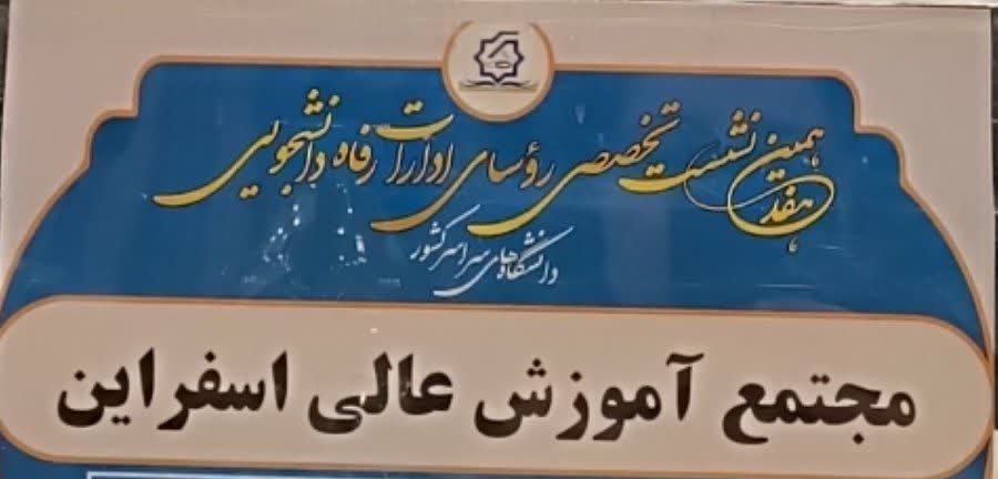 شایان ذکر است دراین نشست، کارشناس صندوق رفاه دانشجویان دانشگاه، به عنوان نماینده مجتمع آموزش عالی فنی و مهندسی اسفراین حضور داشتند.