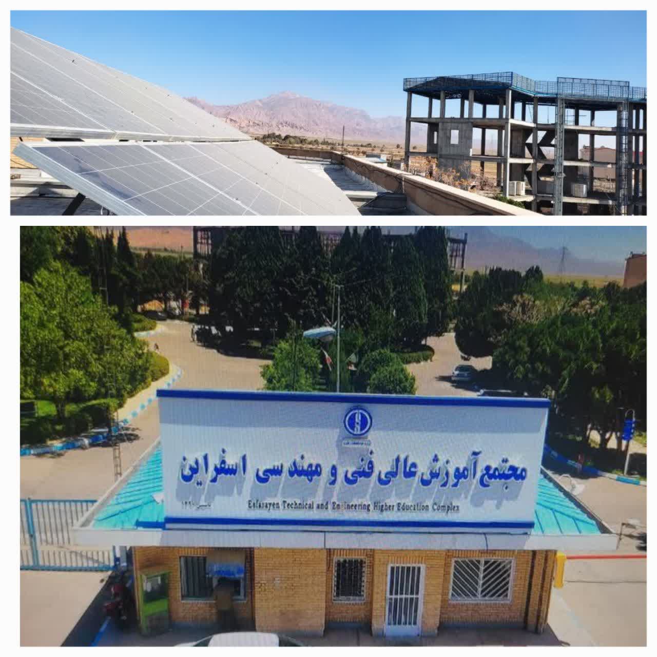 به گزارش روابط عمومی مجتمع آموزش عالی فنی و مهندسی اسفراین، در راستای اجرای طرحهای مدیریت سبز و بهینهسازی مصرف انرژی، نیروگاه خورشیدی ۵ کیلو واتی این دانشگاه با تلاش مدیریت سبز و واحد اداری دانشگاه، و با همکاری آقای دکتر هوشمند، عضو هیئت علمی گروه مهندسی برق، با جایابی بهینه و امکان توسعه آتی، به شبکه برق متصل شد.