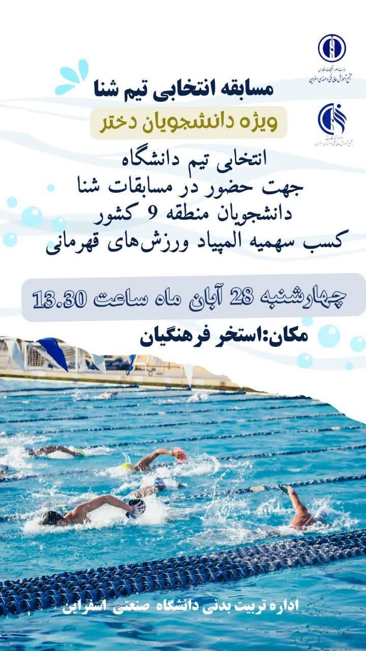 جهت حضور در مسابقات شنا دانشجویان دانشگاههای منطقه 9 کشور