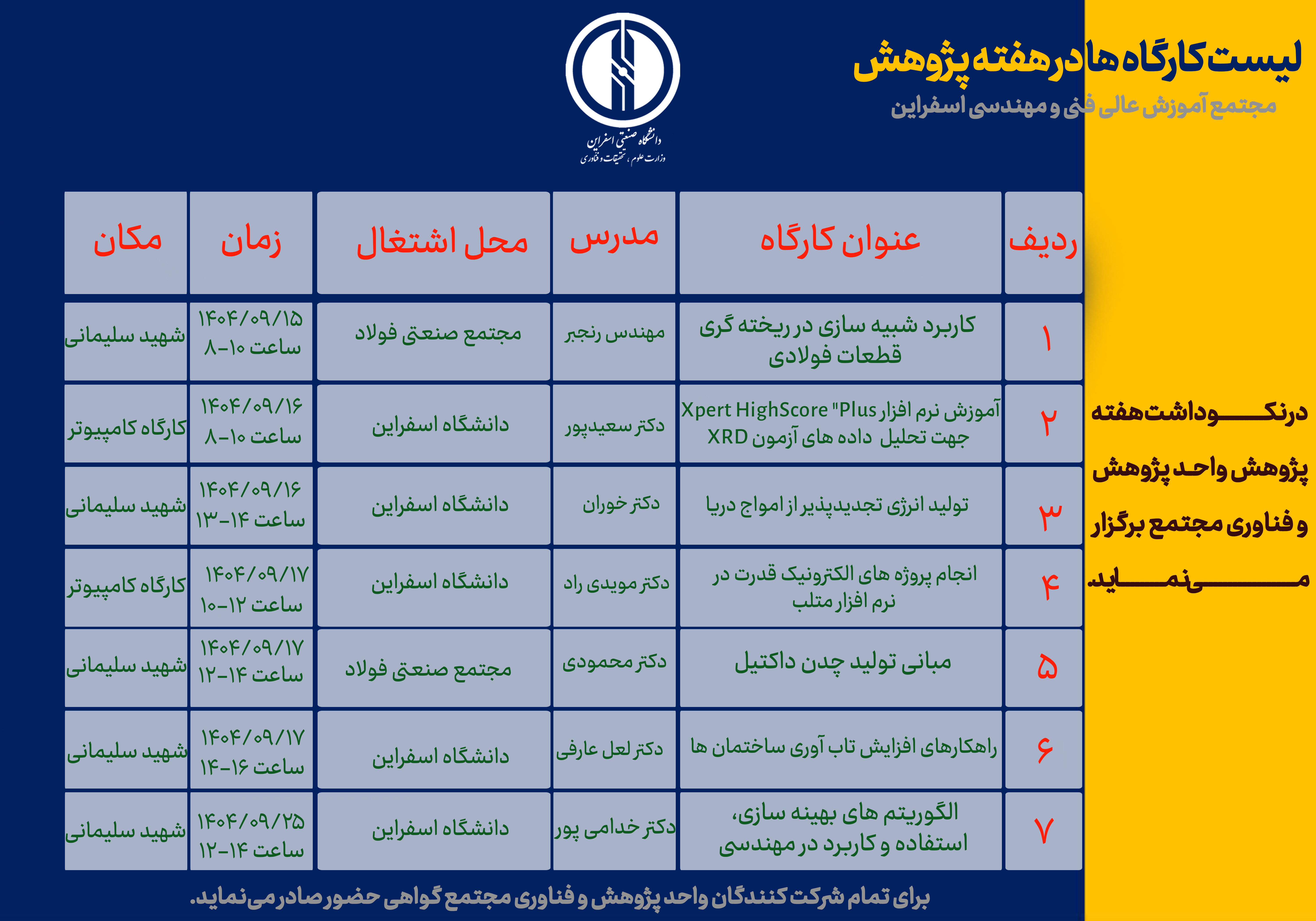 واحد پژوهش و فناوری مجتمع آموزش عالی فنی و مهندسی اسفراین به مناسبت هفته پژوهش برگزار میکنند: ۱۲ آذر ۱۴۰۴ | ۰۷:۳۵ کد : ۹۷۵ اخبار ستادی ارسال به دیگران نام شما ایمیل شما ایمیل دریافتکننده ارسال انصراف تعداد بازدید:۴۲