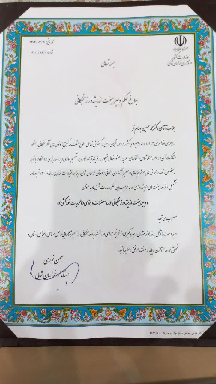 انتخاب عضو هیئت علمی دانشگاه به عنوان دبیر «هیئت اندیشهورز نخبگانی» در حوزه معضلات اجتماعی خراسان شمالی